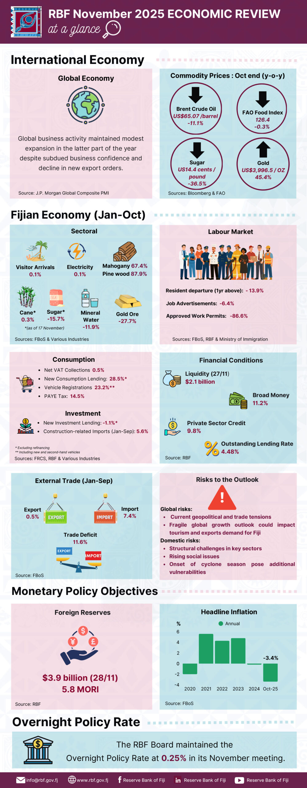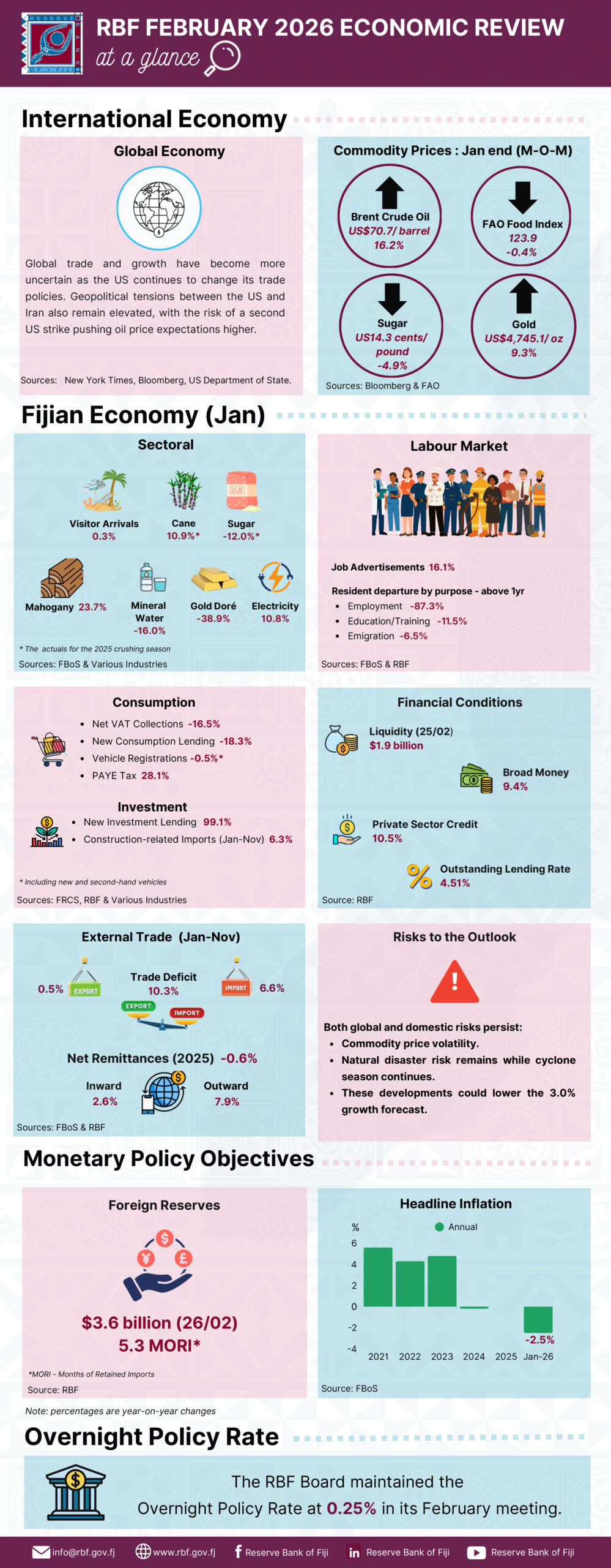 The Reserve Bank is Fiji’s central bank. Our objectives as are to protect the value of currency in the interest of balanced and sustainable economic growth, formulate monetary policy, promote price stability and issue currency.