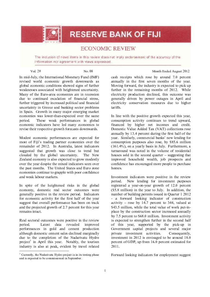 Press Release No 30 – Reserve Bank of Fiji Issues Revised Disclosure Requirements for Licensed Credit Institutions Press Release No. : 30/2012 Date : 03 October […]