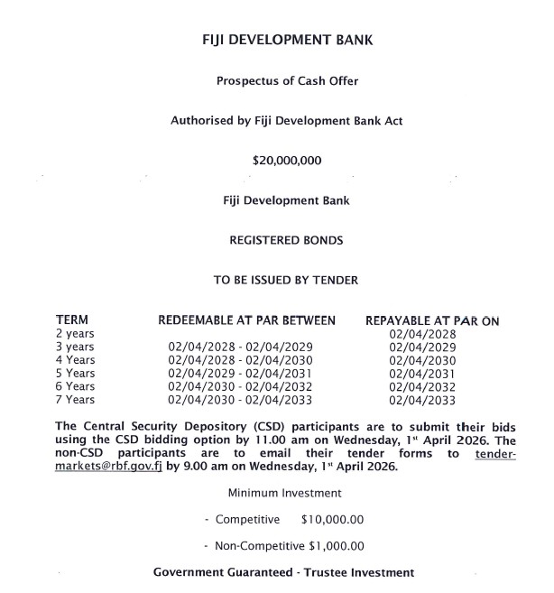 Fiji Development Bank Issue No.1 of 2026