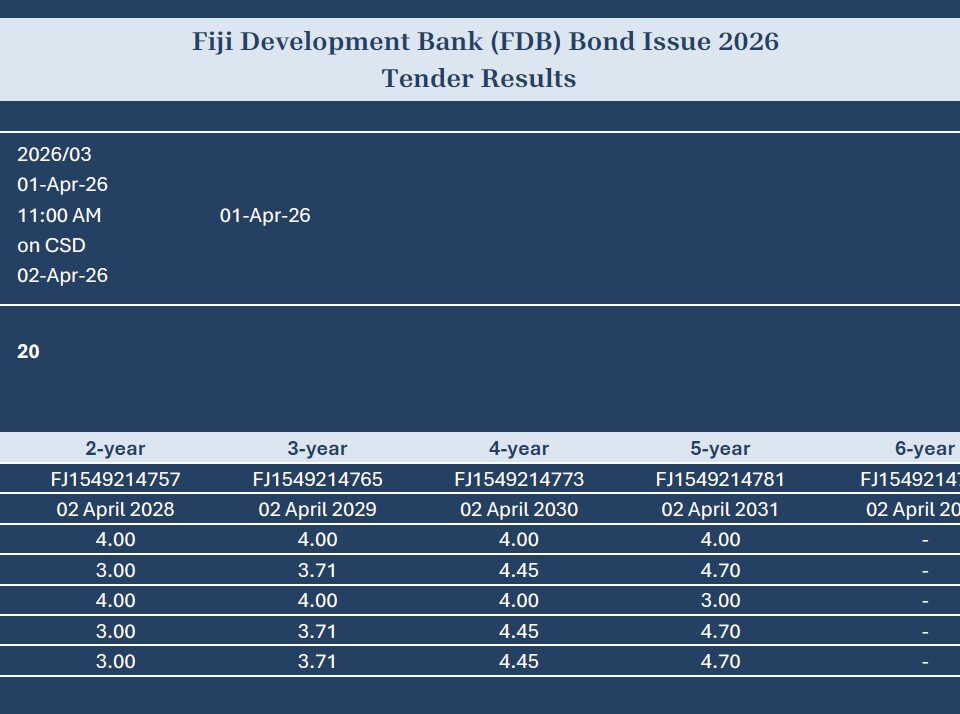 Fiji Development Bank Tender Result 02-04-2026