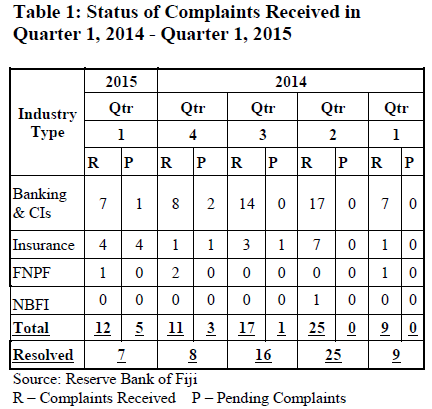 In January 2010, the Reserve Bank of Fiji (RBF) issued a Supervision Policy on Complaints Management to the Licensed Financial Institutions (LFIs)1.